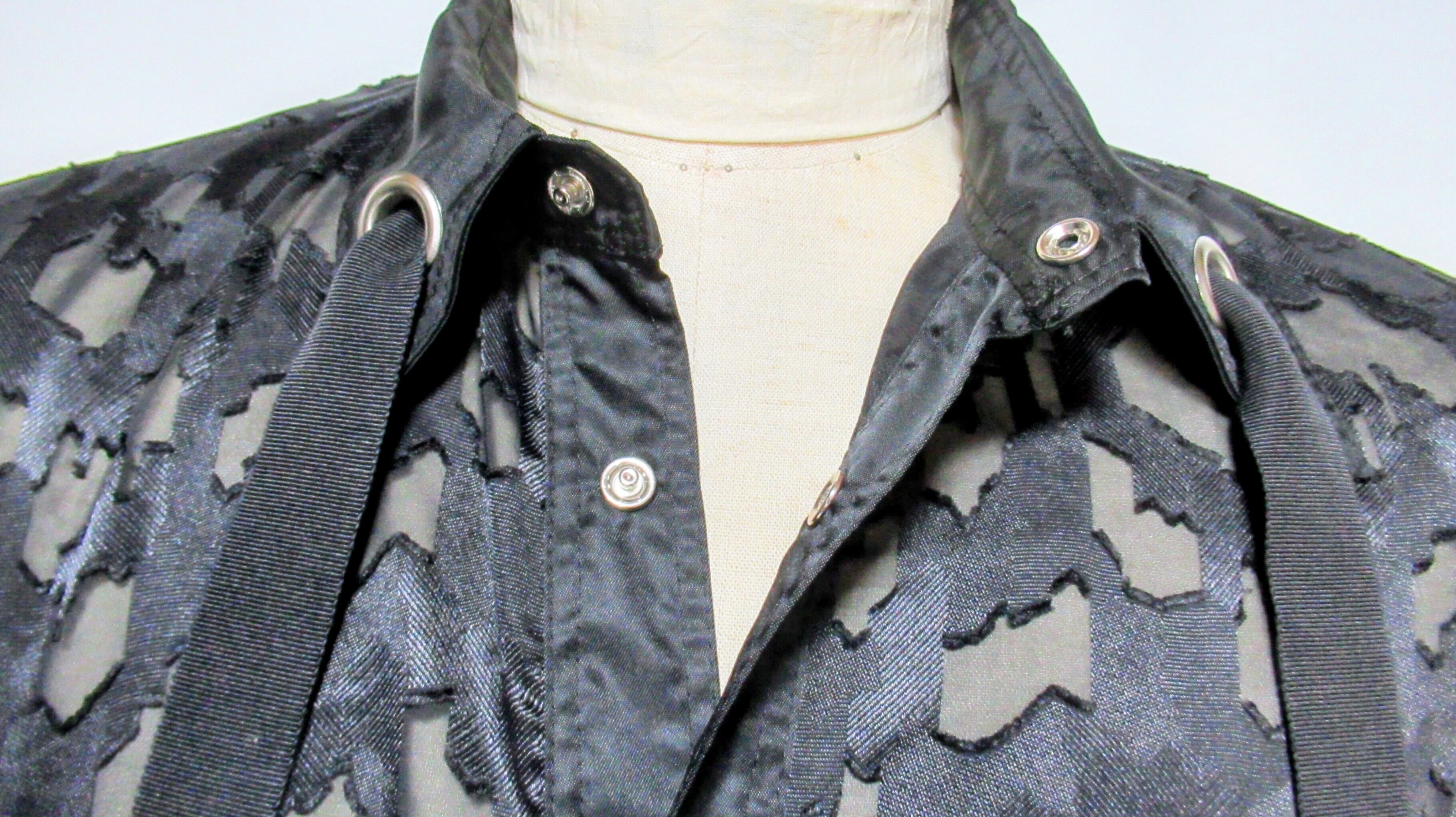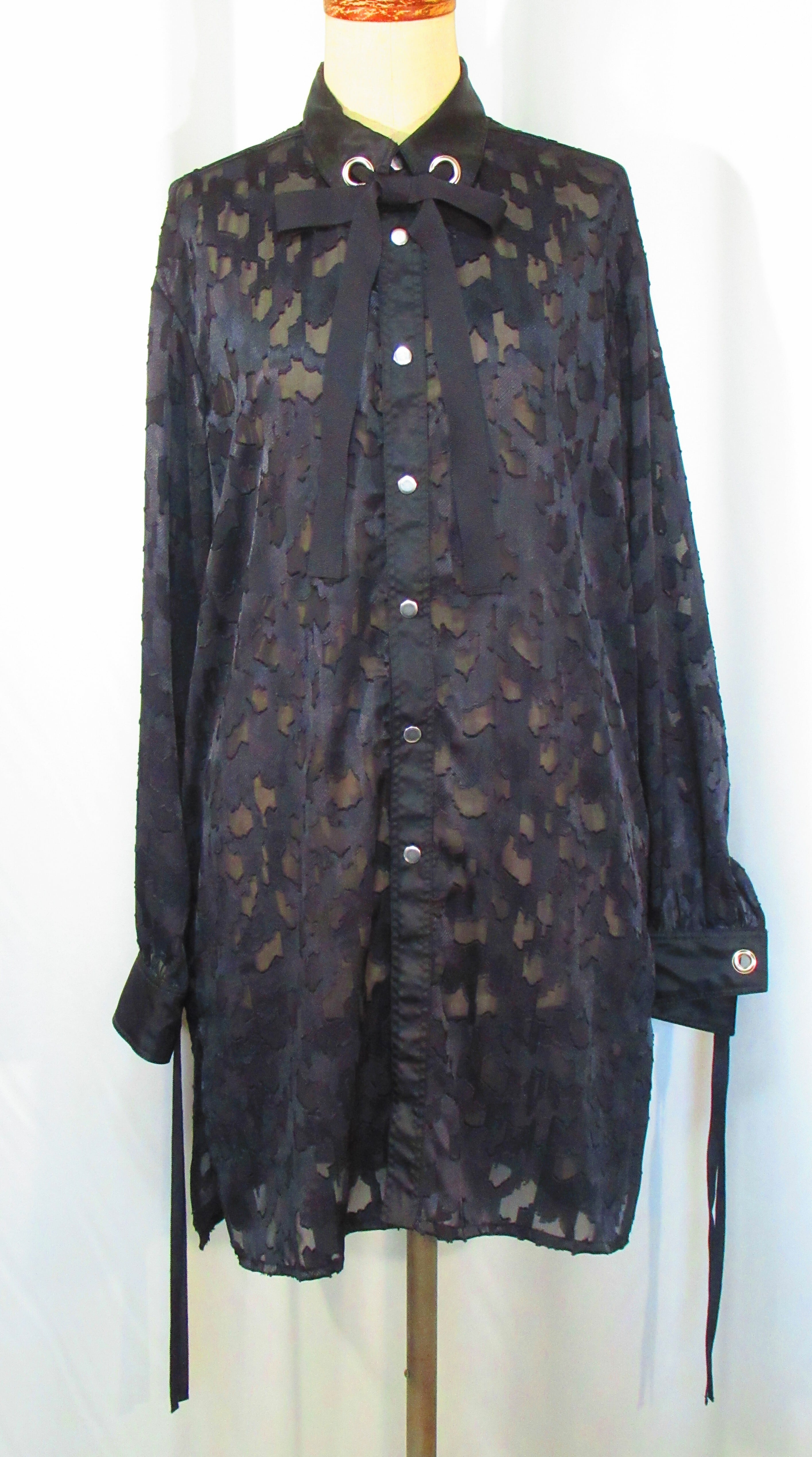 襟と袖口のハトメ穴デザインが特徴で、透け感ある軽やかな素材で、さらっと羽織ることができます。