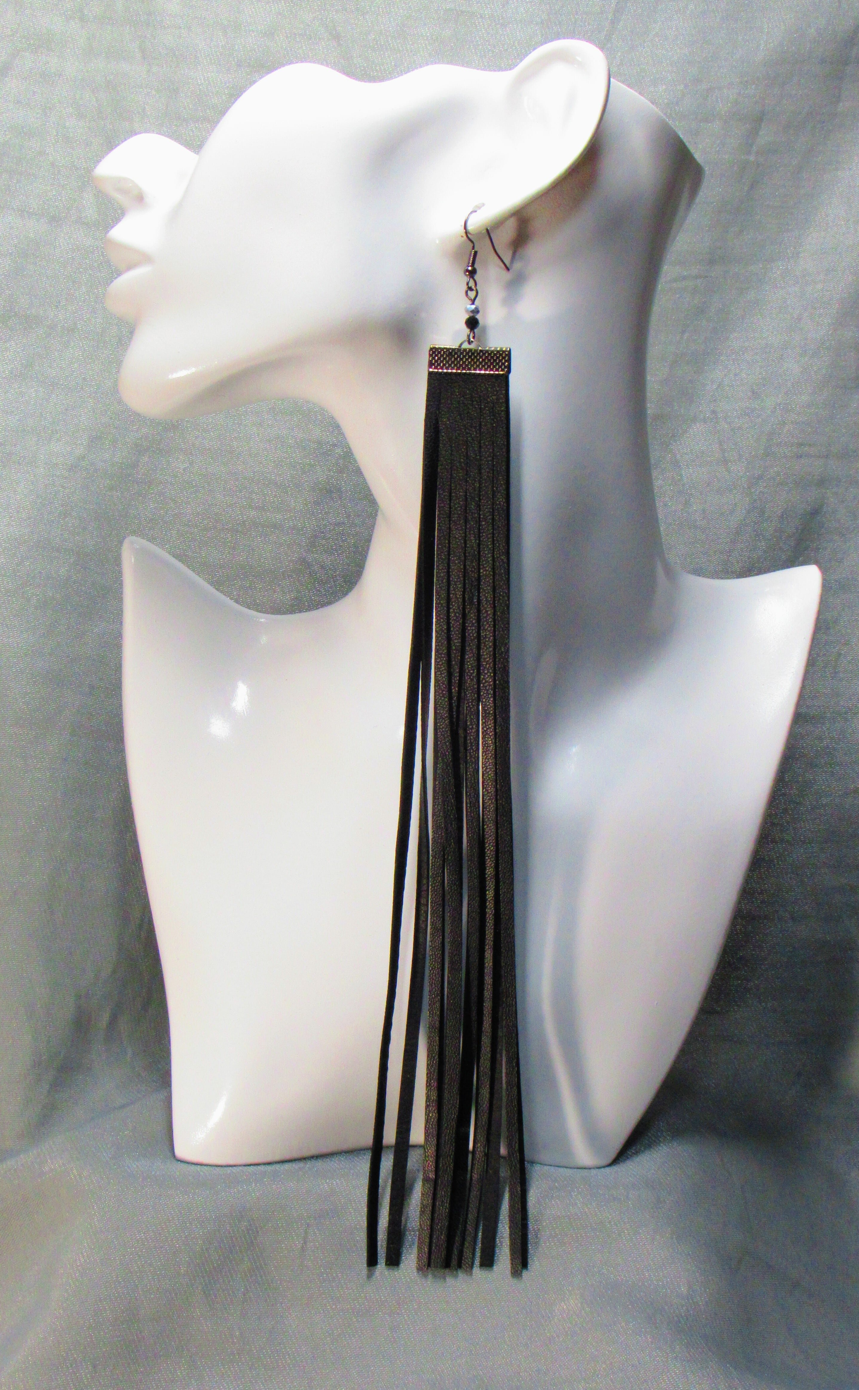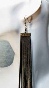 レザーロングフリンジピアス(金具黒)