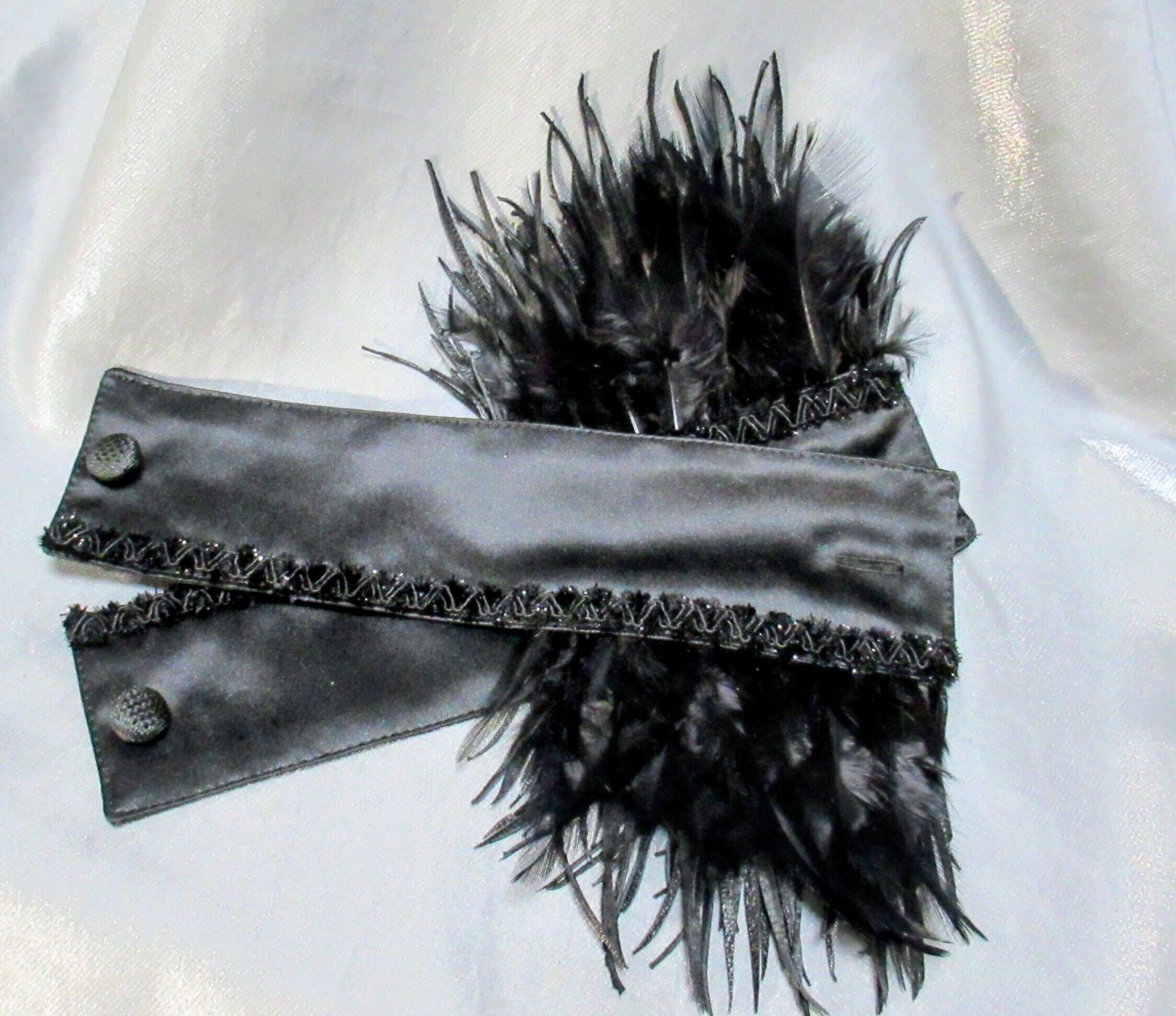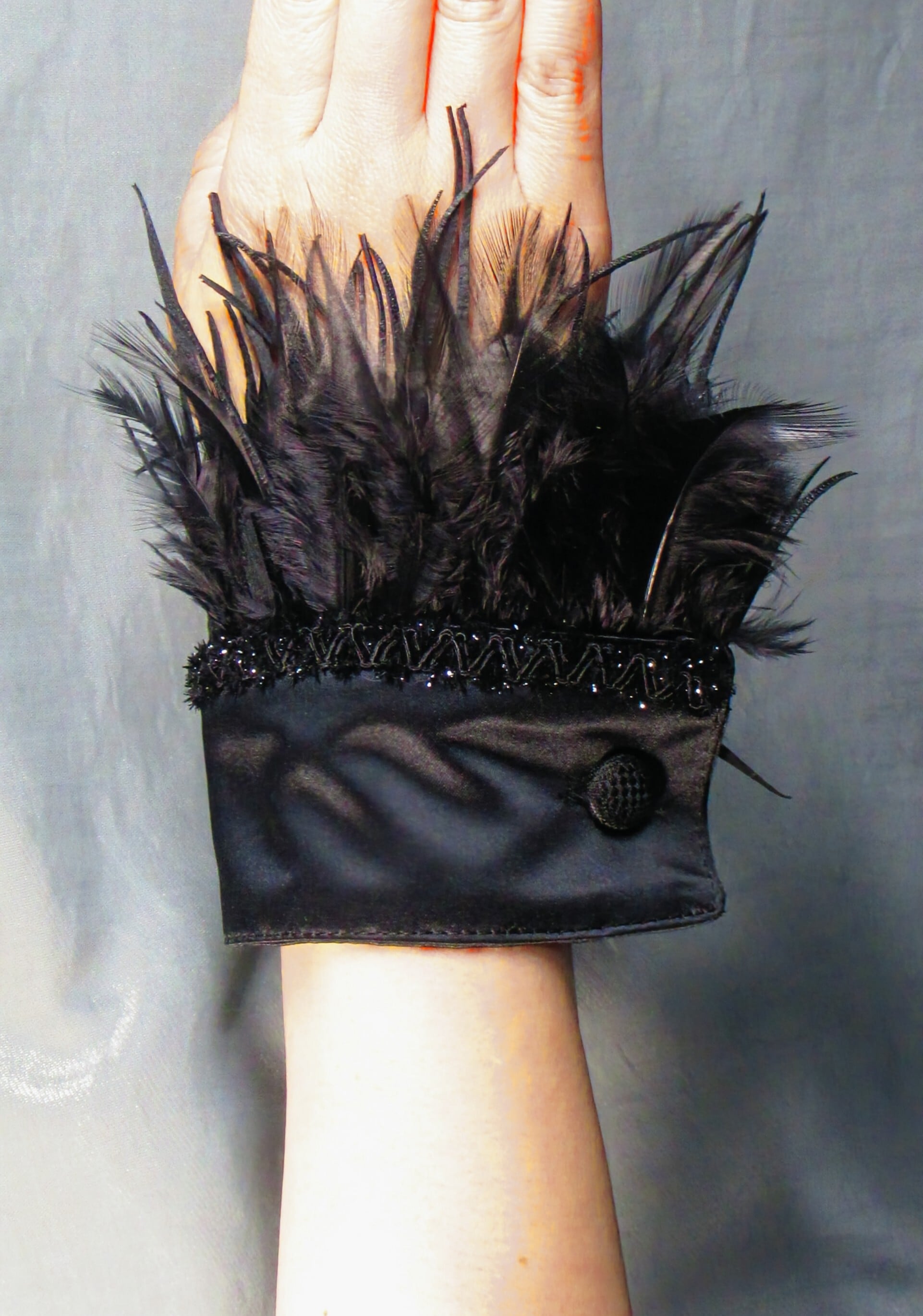 レザーフリンジと羽根を合わせたデザインのカフスです。