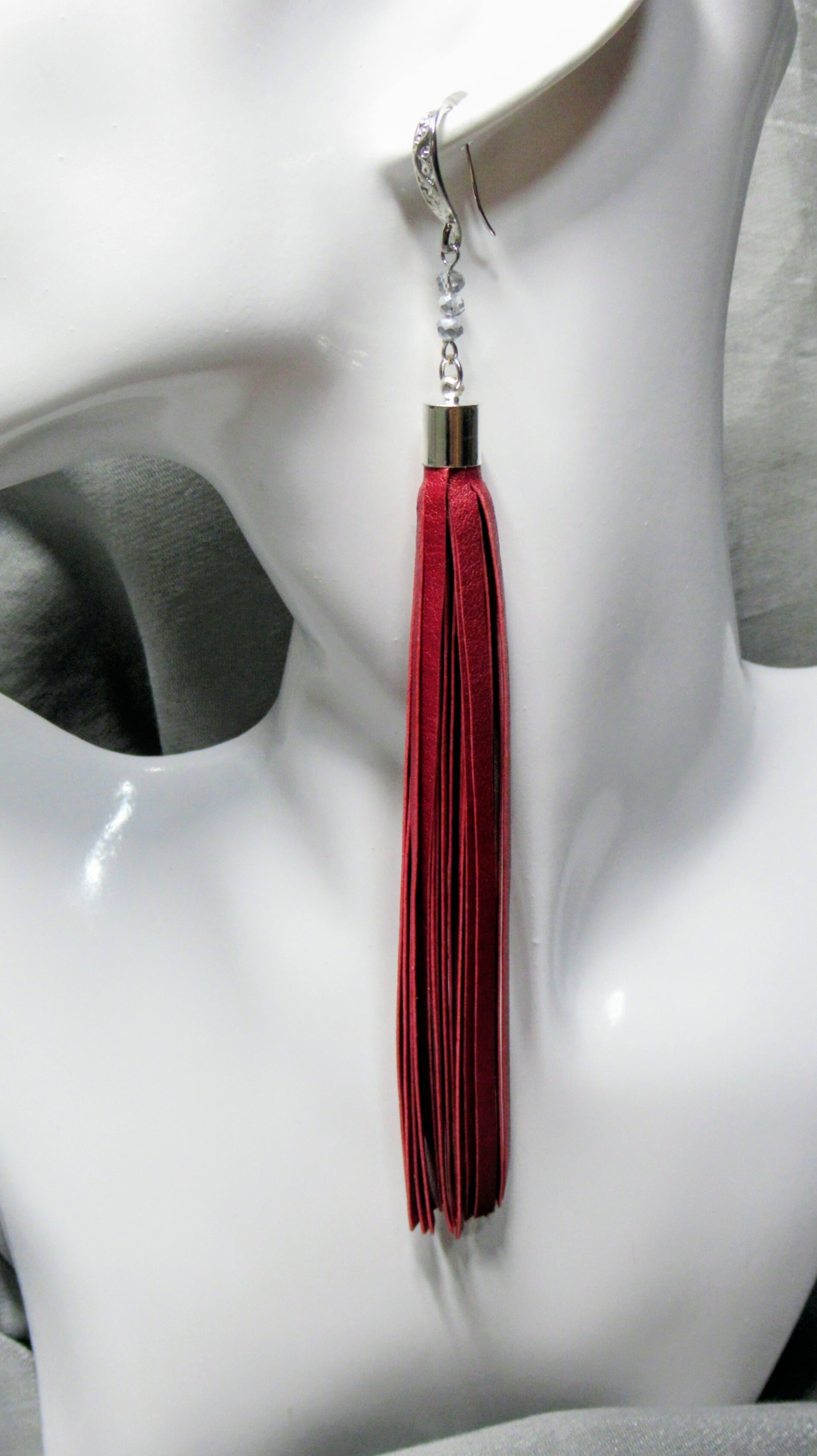赤のレザー素材のフリンジです。